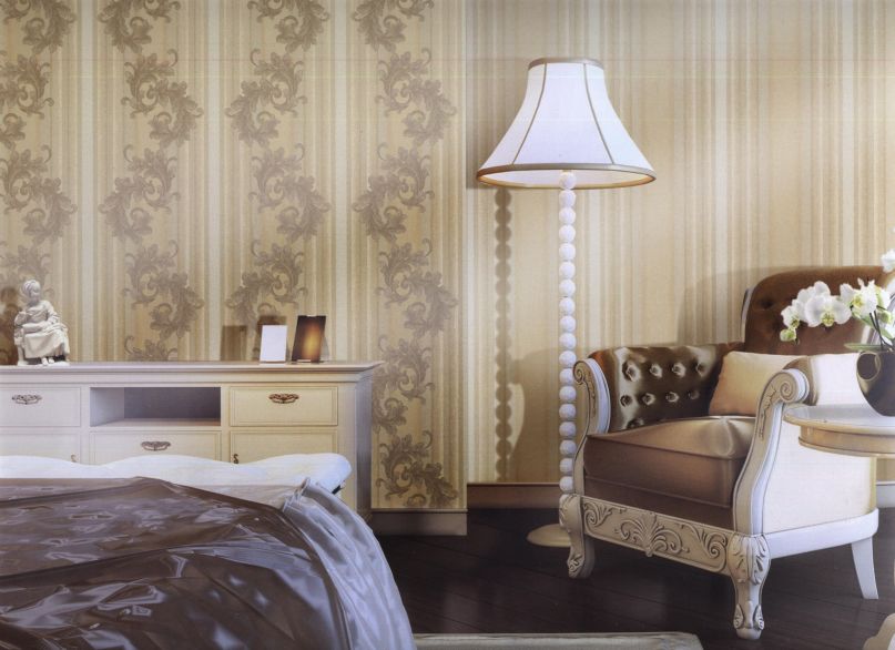 Безупречный дизайн отделки, позволяет украшать стены столовой, кабинета, спальни. В цветовой гамме преобладают спокойные цвета - бежевый, черный, коричневый, золотой, салатовый, оливковый. На полотнах расцветают рельефные цветы, есть рисунки переплетений листьев, вензеля. Любителям классики придутся по вкусу однотонные варианты (имитация рогожки, мешковины), сдержанная полоска.